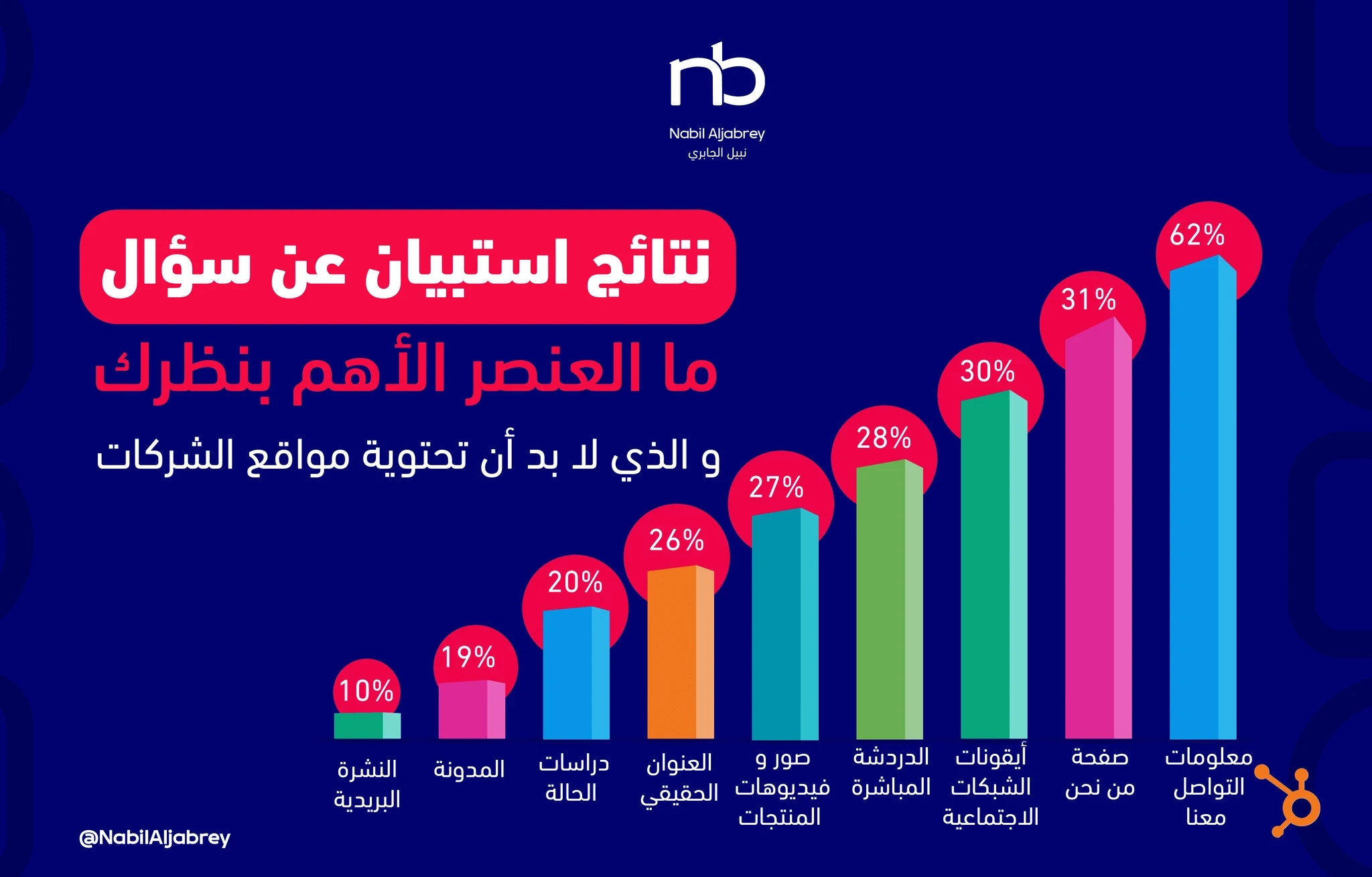 إضافة إلى ذلك هذا ما يطلبه العملاء بالفعل؛ وتفرضه قوانين المملكة. فمن ناحية ما يطلبه العملاء نجد في دراسة حديثة من هب سبوت عناصر الموقع المطلوبة وفق العملاء مرتبة حسب الأولوية كما ترى في الرسم البياني أدناه.